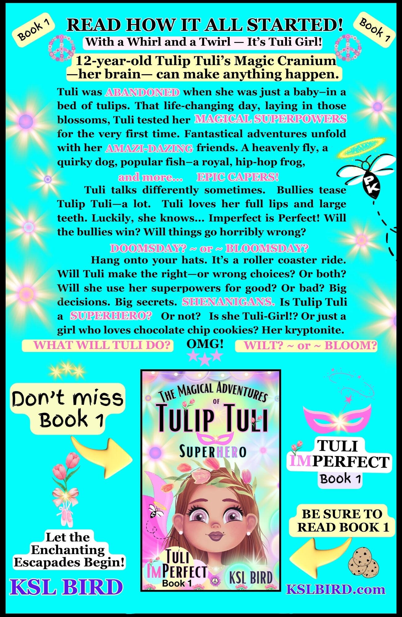 Welcome to THE MAGICAL ADVENTURES of TULIP TULI SUPERHERO SERIES! BOOK ONE: TULI IMPERFECT and BOOK TWO: TULI IMPOSSIBLE. Grab a cookie and dive into these fun, friendly books... entertaining the young and the young at heart... for ages 8 to 108. Armed with overflowing sparkles, giggles, and amazi-dazing secret superpowers, Tulip Tuli embarks on heartwarming, suspenseful escapades that will leave you rooting for her. This precious, picked-on superhero and her bullied friends.... a Royal Frog, a Quirky Dog, a Heavenly Fly, and more WILL CAPTURE YOUR HEART and LEAVE YOU READY FOR MORE OF TULIP TULI'S WHIMSICAL, MAGICAL ADVENTURES! Grab your cape. TULIP TULI IS TWIRLING ONTO BOOKSHELVES EVERYWHERE... February 2026! Author: KSL BIRD! PK25 Publishing! The Long Ride begins... Bam!